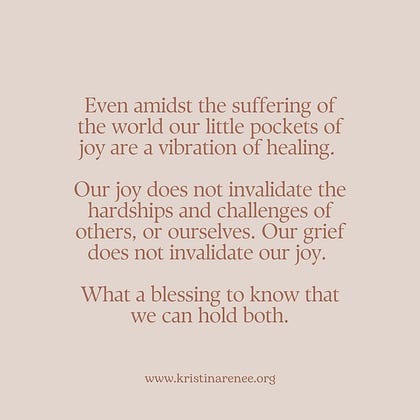 Our joy does not invalidate the hardships and challenges of others, or ourselves.