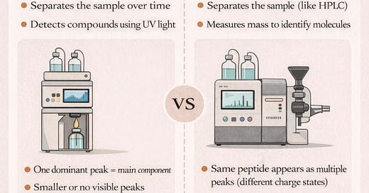 For those of you involved in peptide testing, or simply curious about what these terms actually mean, I’ve put together a simple guide to the testing terms people see all the time: HPLC-UV and LC-MS. Not a deep dive, just a straightforward explanation of what they mean and what each method actually shows.