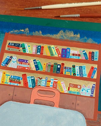 mi parte favorita de mi trabajo es cuando me toca pintar bibliotecas e inventar lomos de libros :-)
