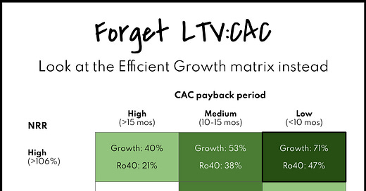 The Efficient Growth matrix. Forget LTV:CAC, look at this instead.
