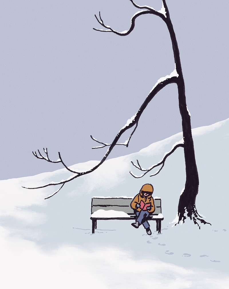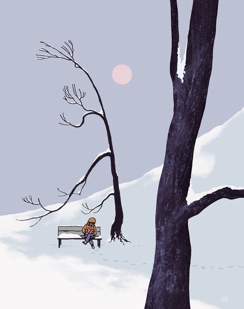 Drawn quickly on Wednesday while riding on a train with a snowy view out the window.