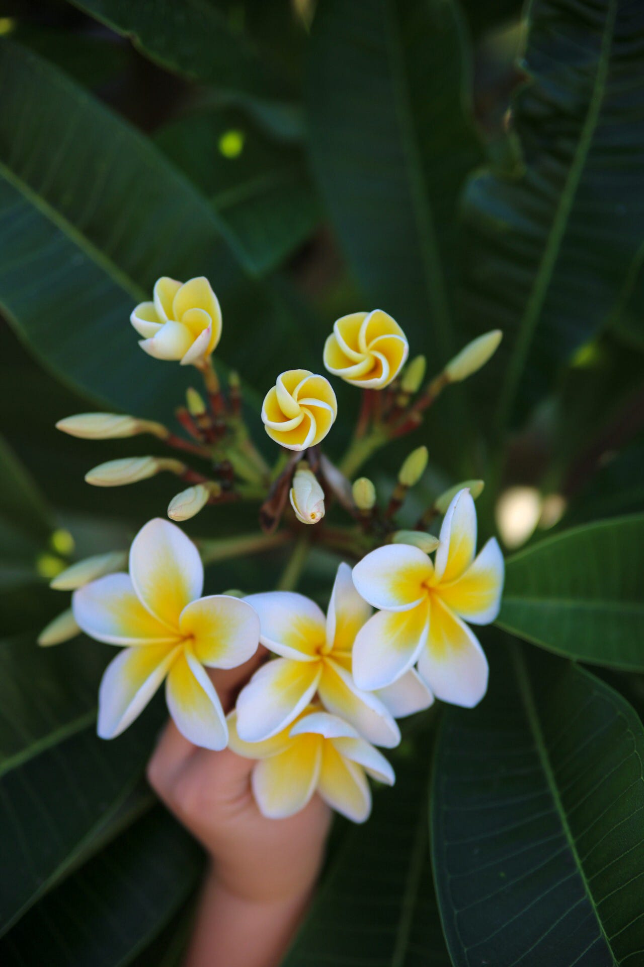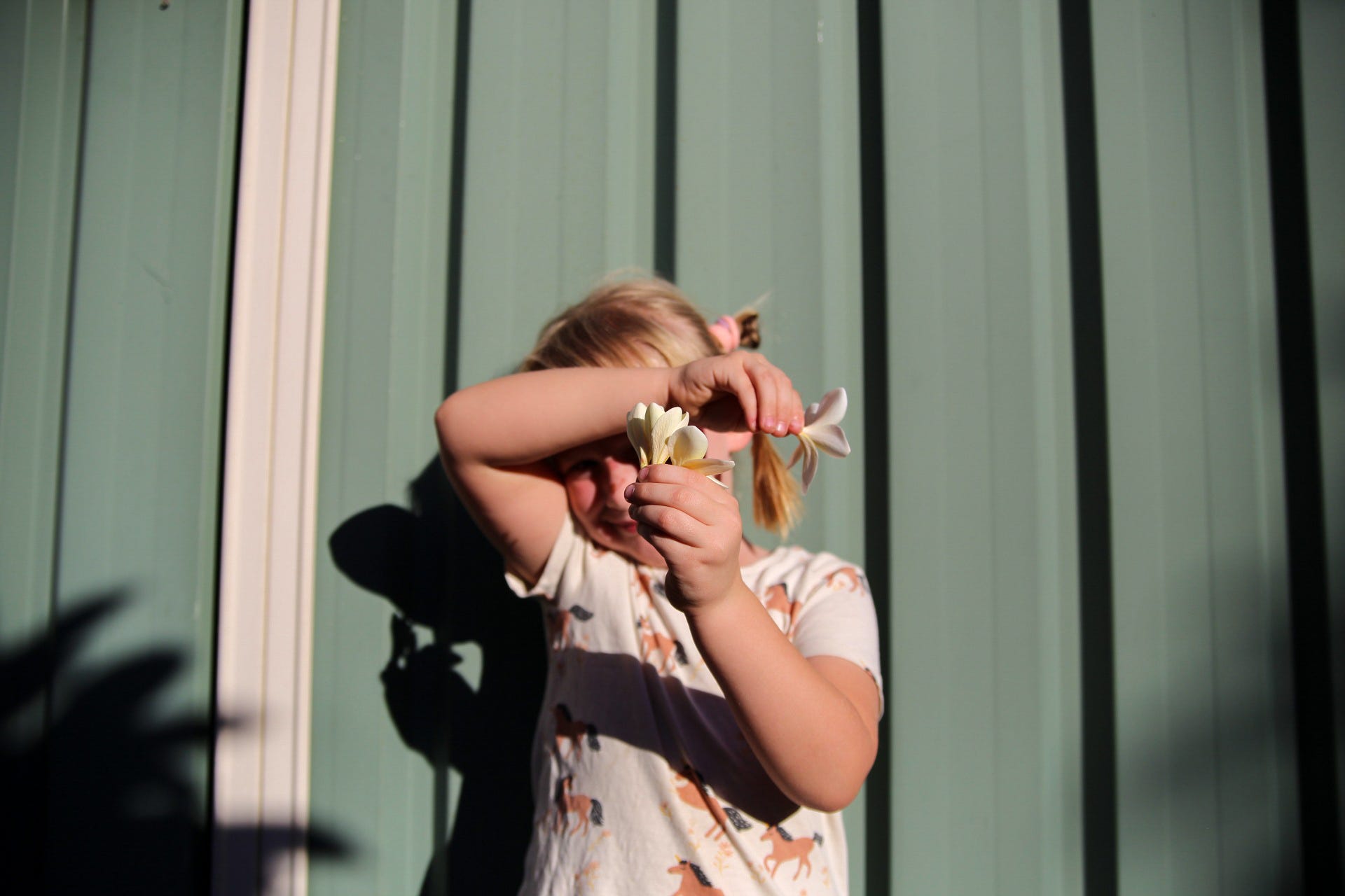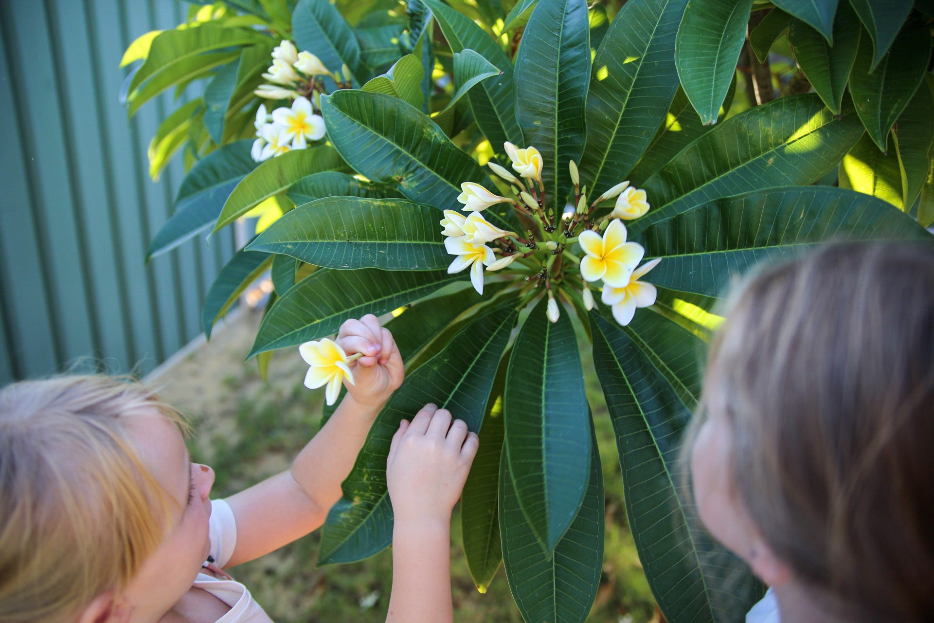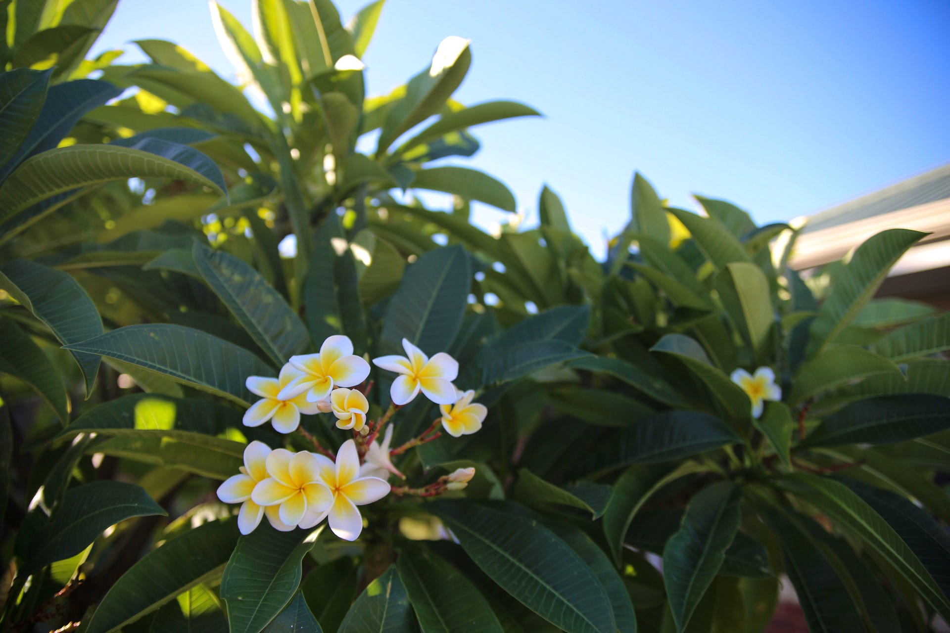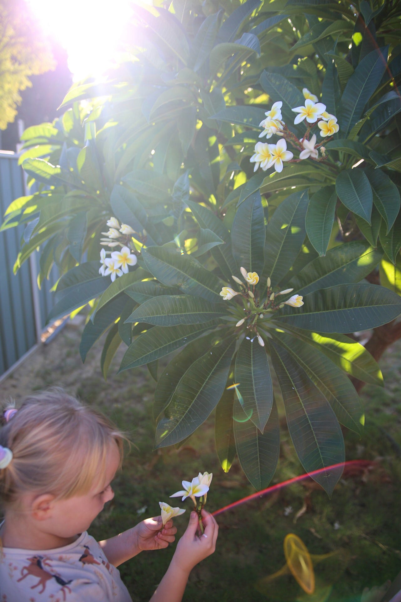 Patrik L I live in the area of Perth, Western Australia, and so we are ever so slowly heading into autumn and winter. This frangipani tree at our new house was completely bare when we moved in winter, then last spring it began to shoot out leaves and then it burst forth into flowers. We had a long hot summer and the flowers have been falling off like the rain we aren't getting just yet. But, it's finally cooling down, and we've been spending more time outside in the backyard now that it's more bearable. These are the last of the frangipani flowers and although they fit the spring theme because they're flowers, I'm actually documenting this to remember the change in season to autumn and winter. I must add that I just absolutely love the contrast between the beautiful open flowers and the twirled up, closed flowers. My girls were fascinated by that too. And I'm thankful that the golden light pouring in is now not so harsh but warm and welcome.