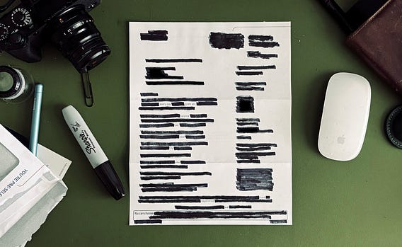My new hobby: making blackout poetry out of junk mail and mailing it back to them.