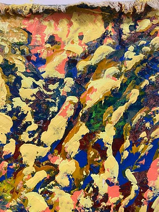 Whatβs been happening in this country has moved me to lean even harder into colorful, sumptuous surfaces in some of my new work. Glossy with matte and even using glitter, of all things. I say βof all thingsβ because in the past I didnβt give glitter a first thought. Now, I want that glittering, reflective light in my work to draw people β¦