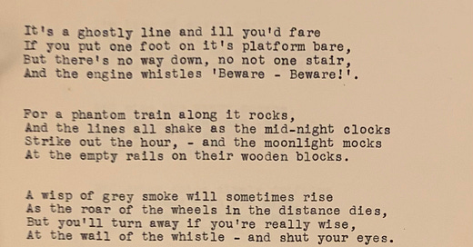 For the porters are dust and the guard is dead,Though the lights still change from green to read;And the passengers lie in a wormy bed,While the prayers for their souls have long been said.