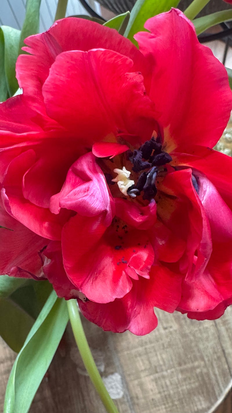 Look at its beautiful center. It may not be perfectly organized, but it’s all there. Tulip photo by me.