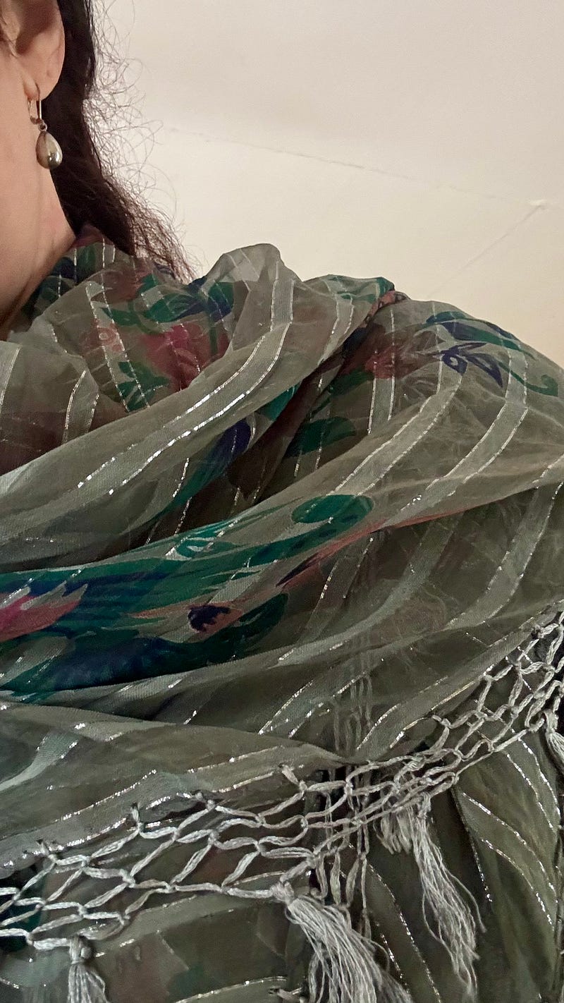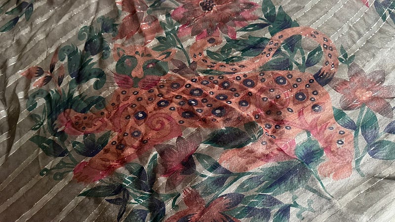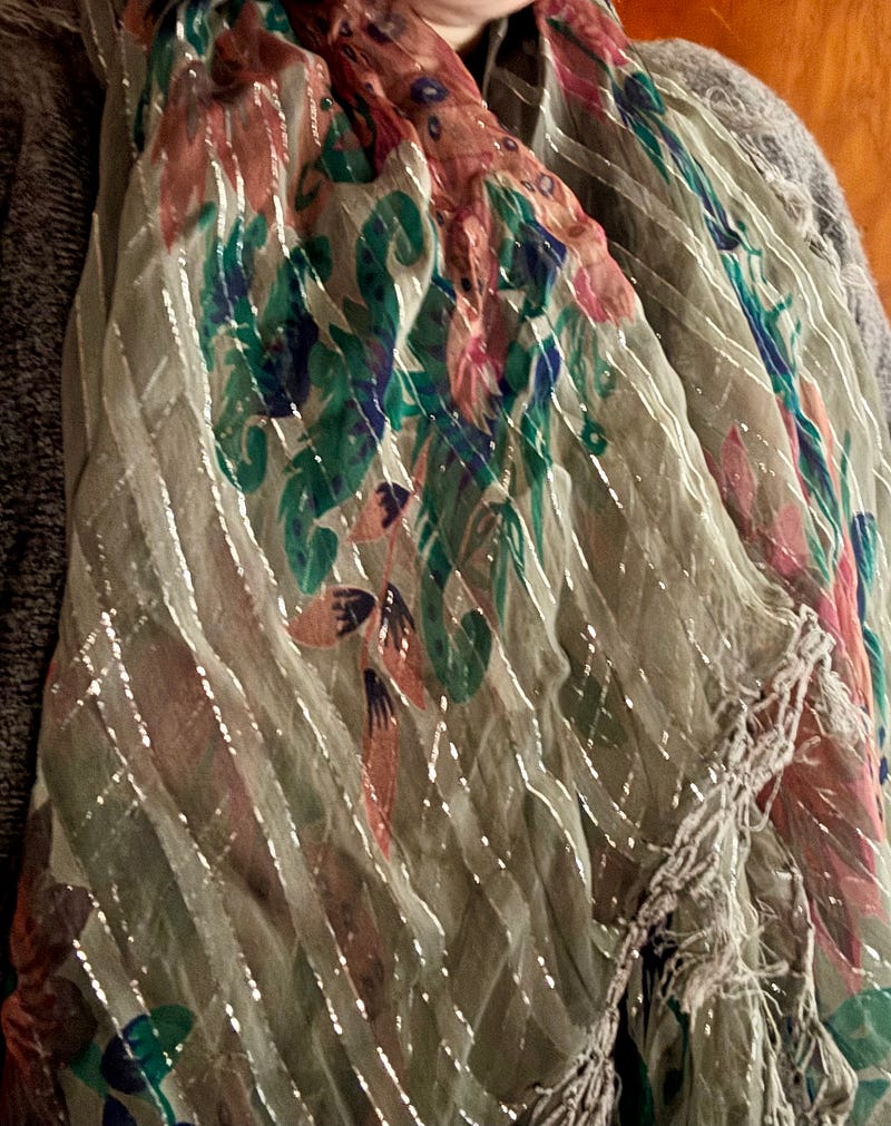 This scarf was probably bought from a street vender in NYC c. 1987. If you remember the series Moonlighting, then you know what the styles were: No outfit was complete without its scarf! (See more about this in my added comment👇🏻)