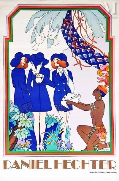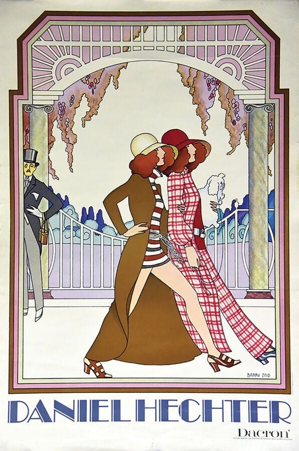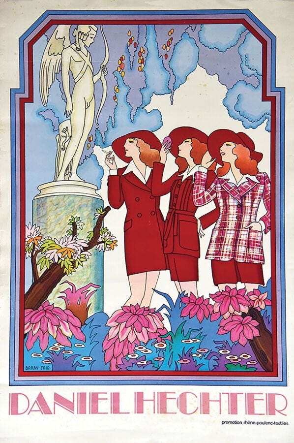 I’ve long loved these posters that Barry Zaid did for the French ready-to-wear company Daniel Hechter in 1970, so it was a dream speaking with him for my podcast, Sighs and Whispers. Now based in Mexico, the 87-year-old self-taught Canadian artist spoke openly and honestly with me about the great successes and the great pains of his life, growing up gay in the 1950s, the scourge of AIDS, his influences, and how he cultivated his style.