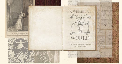 A new icon (because I love that I can change the branding here whenever I get the desire) and a guide to A Whimsical World — a playful and honest window into my thinking, where I write about the things I can’t stop obsessing over. It is where I unpack my inspiration, share the rabbit holes I am lost in, and write about the art, books, design, and fashion that keep me curious.
