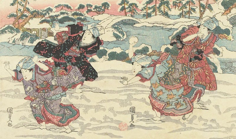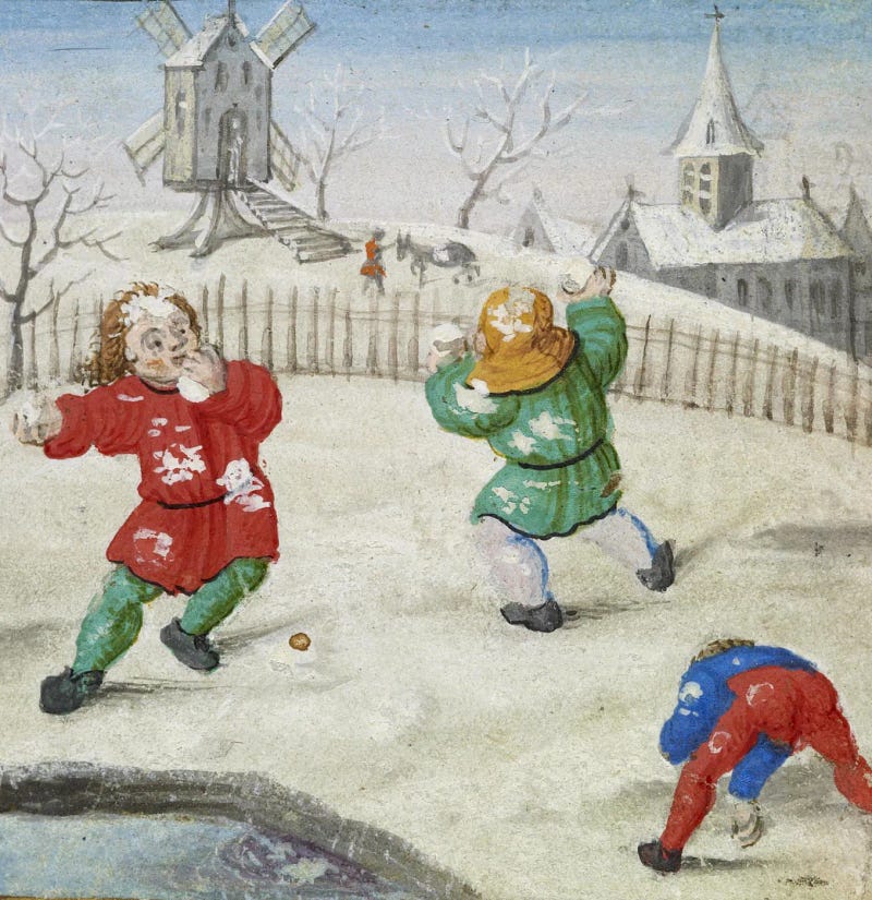 Via The Public Domain Review: Snowball Fights in the Arts