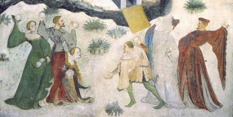 Image 4: Detail from a fresco depicting the month of January at Buonconsiglio Castle in Trento, Italy, ca. 140O