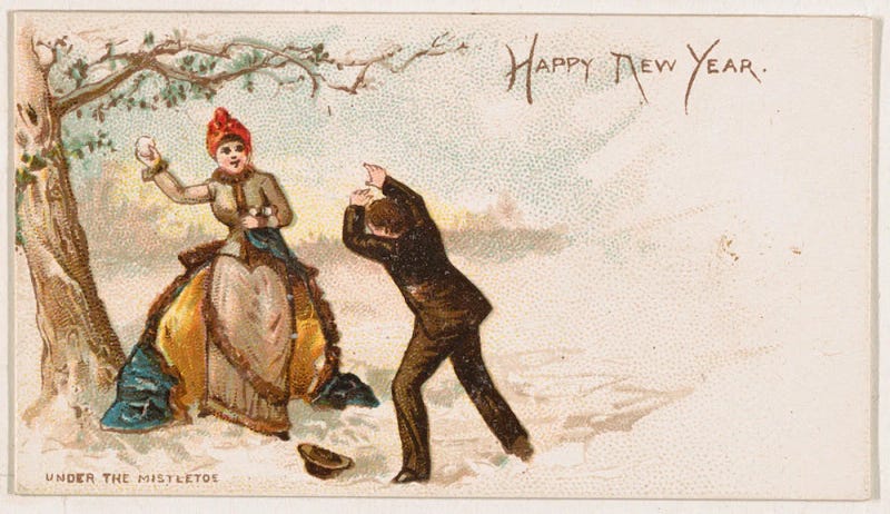 Image 1: Happy New Year, from the New Years 1890 series (N227) issued by Kinney Bros, print (MET, Burdick 218, N227.7)