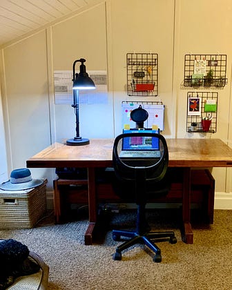 We spend hour after hour together, this desk and I. It has felt the vibrations of my laughter and the dampness of my tears. It has eavesdropped on a thousand long-distance chats with my sister and sat patiently through every Zoom meeting of the modern era. It knows my secrets, my sighs, and my grocery lists.
