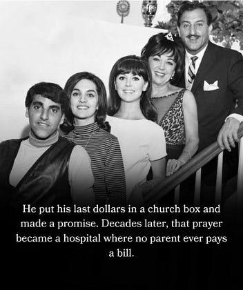 In 1962, St. Jude Children’s Research Hospital opened its doors in Memphis. It welcomed children of every race at a time when segregation still ruled the South. And it made a promise as radical as Danny’s own: no parent would ever receive a bill. Not for treatment. Not for food. Not for housing. The only job of a family would be to help their child survive.