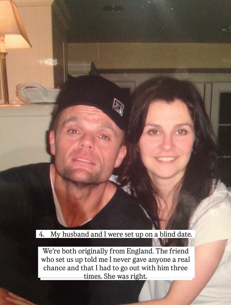 We're both originally from England. The friend who set us up told me I never gave anyone a real chance and that I had to go out with him three times. She was right.