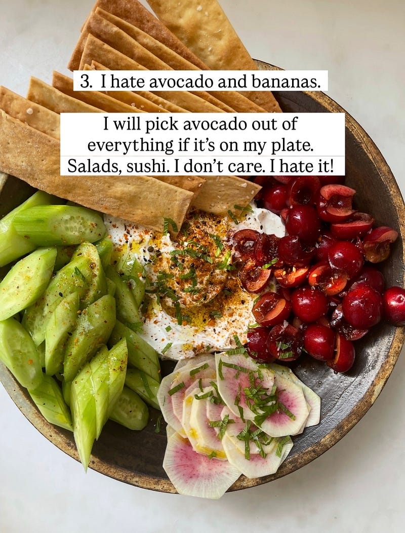 3. I hate avocado and bananas.
