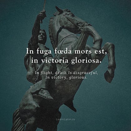 In fuga fœda mors est, in victoria gloriosa — “In flight, death is disgraceful, in victory, glorious.”
