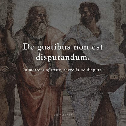 Dē gustibus nōn est disputandum — “Of tastes there is nothing to be disputed.”