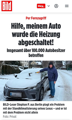 Per Fernzugriff abgeschaltet – im Winter. Über 100.000 Autobesitzer betroffen.
