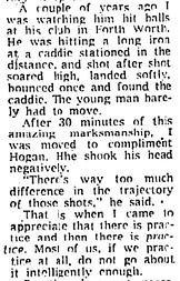 Player indicated he felt he was probably second. Today, on my daily virtual trip 50 years into the past, I found this incredible story about Ben Hogan's golf practice in the April 4, 1976 New York Times.