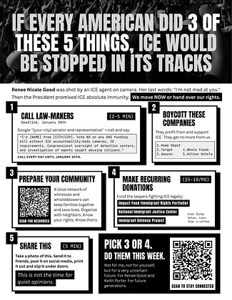 Renee Good was murdered almost two weeks ago, but things haven’t gotten any better there. Please don’t stop talking about what’s happening. Please don’t stop fighting back.