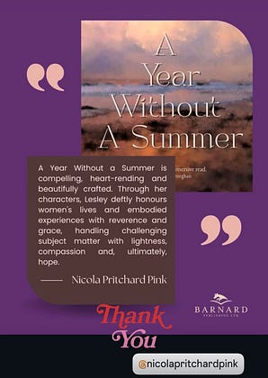 Thank you so much to Nicola Pritchard-Pink for taking the time to read and provide this wonderful review for A Year Without a Summer ππ»βΊοΈ