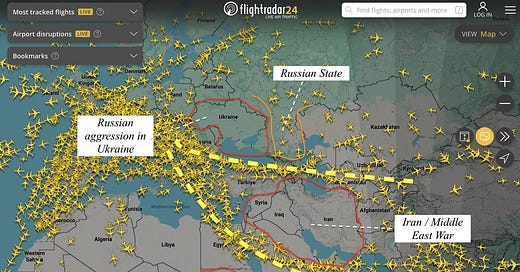 Flights between Europe and Asia are now being squeezed through just two narrow corridors.