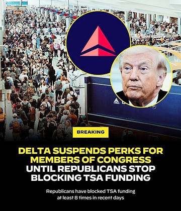 Lawmakers will no longer receive dedicated escort services or expedited assistance, and will instead be treated as regular passengers based on their individual SkyMiles status until TSA staff are paid.