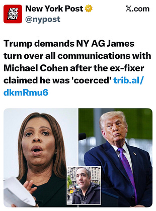 Letitia James is the first casualty in Cohen’s attempt to crawl back into Trump’s orbit — the same Trump world he once claimed to expose.
