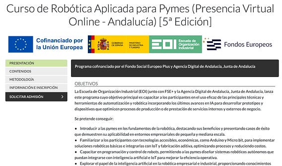 Curso gratis de robótica para pymes.Un año más vuelvo a colaborar como profesor y mentor en el curso de robótica para pymes que organiza La EOI en Andalucía.
