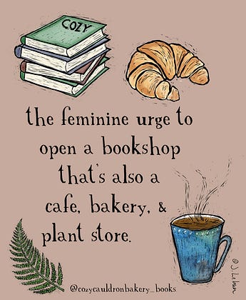 Cozy Cauldron Books & Bakery - it’s TOTALLY not just you. I dream about this very thing every day.