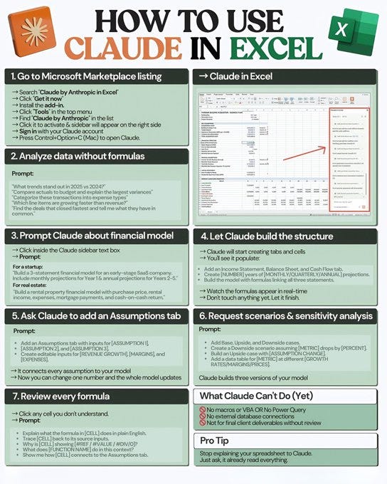 Claude turns Excel into your AI co-pilot that never sleeps & does real financial work.