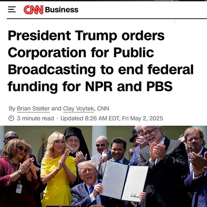 NPR receives $3M/year in federal funding. PBS receives $80. The military-themed birthday parade Trump is throwing himself will cost taxpayers $92M. Cutting children programming for a birthday parade for a draft dodger, really?