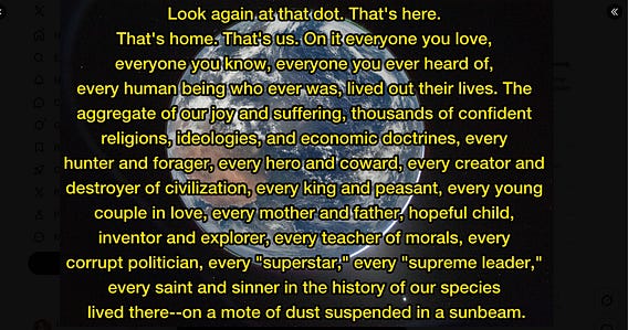 Carl Sagan's "blue dot" is a sacred text to me. Despite the issues, we need space exploration to live in the frame of reference he so eloquently described.
