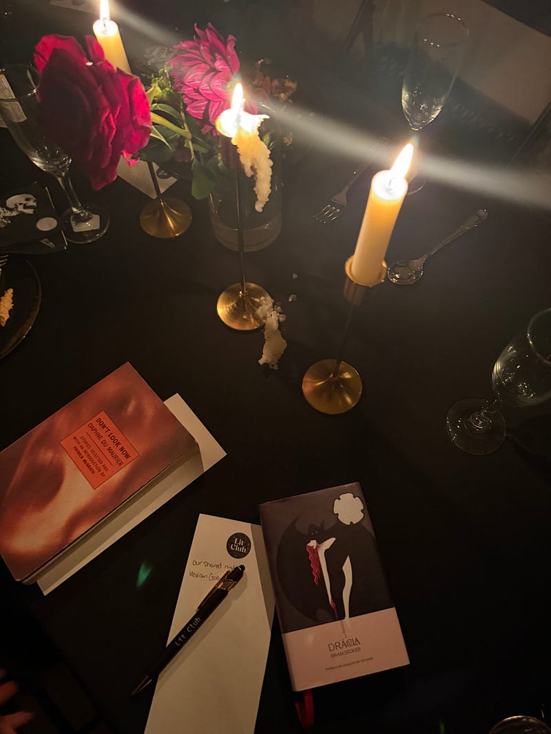 Last night we gathered in a historic Harlem brownstone for a haunted literary dinner on fear. Everyone shared a book that has haunted them in some way then we explored resonant themes together. Guests shared a wide arrange of texts: classic horror books like Dracula, dystopian novels like Severance and Brave New World and newer works of literary fiction like Perfume and Mexican Gothic.