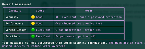 ❯ Using the postgres-best-practices skills, audit and analyze my supabse project using the supabase mcp server