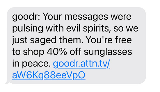 “We saged your evil spirits so you can buy sunglasses in peace.”