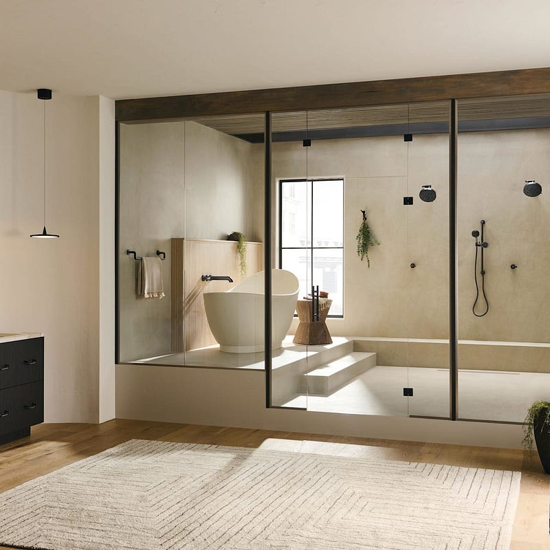 I have often written about killer bathtubs, designed to be impossible to get in and out of safely, usually freestanding with thin walls. This one wins the prize for the deadliest yet: a killer tub at the top of two steps with no handrails, one step doesn’t even run the full distance because it would hit the glass. And this is in a house designed for “wellness.”