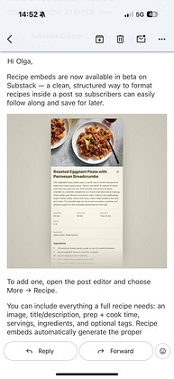 Substack is launching a recipe embed. Just saw this in my inbox today.