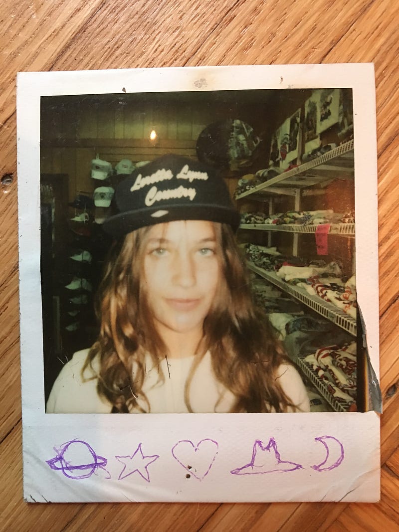 Below is a short excerpt from “Rock Legend,” a chapter from my forthcoming book Wild West Village, as well as a polaroid my dad took of me on the trip it chronicles. I am 16 and we were in Hurricane Mills, TN at Loretta Lynn’s Country Store, where we stopped en route to Graceland, because he knew how much I loved her.