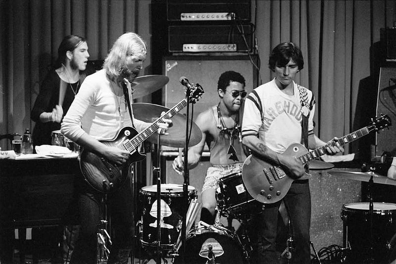 "I think that's what my brother wanted, a revitalized, up-to-date rhythm and blues band, with the guitar players being very present in playing all this harmony—from the start, you could see that was going to be a part of it, those guitars doing harmonies and, man, the hours the rest of us would spend off to the side while those to work out those parts." Gregg Allman 📷️Papazian