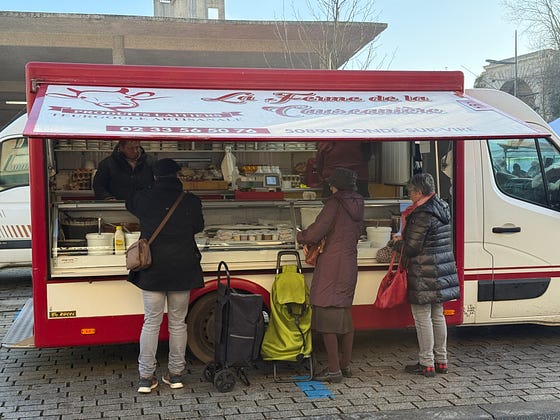 Who would have thought that this humble market stall in Saint Lo in Normandy sells the world’s greatest chocolate mousse?