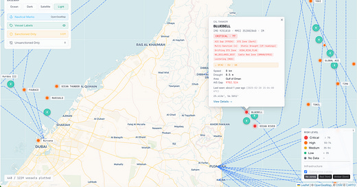 In the context of Russia’s shadow fleet, deliberate darkness is the rule, not the exception. Extended AIS gaps correlate reliably with ship-to-ship oil transfers at sea, undeclared Russian port calls, and, according to Soldatov and Borogan’s reporting, potentially the positioning of personnel and equipment for hybrid warfare operations.