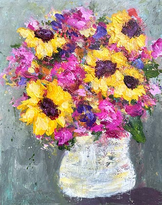 This happy sunflower painting will be available on Friday, April 10 along with a group of other joyful little florals!