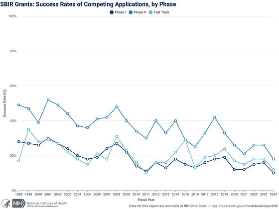 The evolution of SBIR Funding reported by NIH is declining.
