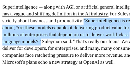 Has someone made a timeline of all the times that the AI tech bros has shifted the goal posts on “AGI” and “superintelligence”? It must be a head-spinning list. And anyone who can read such a list without their head spinning probably has millions of dollars (or so they imagine) “at stake” in a fundamentally speculative technology.