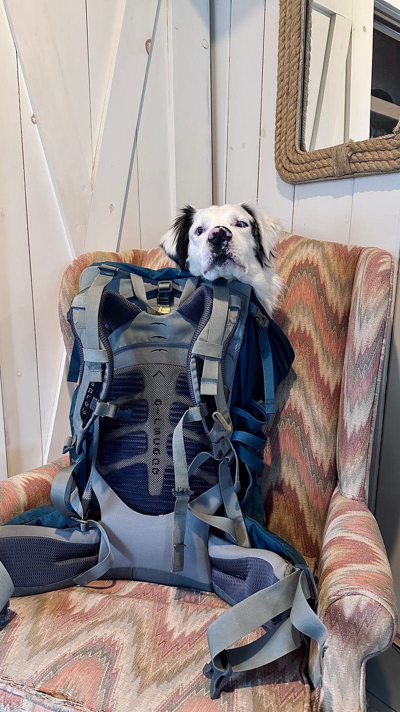 Photo 5: For a bike to hike island excursion the other day, we loaded him in the trekking pack, perched on a pillow, and he was so content being physically tethered to me.