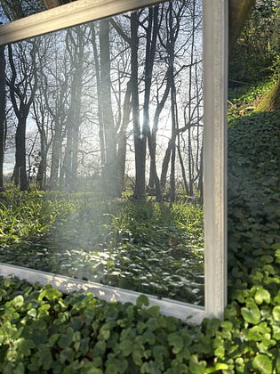 I don’t know where this mirror came from but it reflects bluebells like stars in the forest. I wonder what is on the other side…