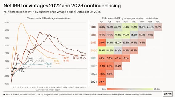 At the top quartile of performance, the 2022 and 2023 vintages are inching closer and closer to vintages from the late 2010s