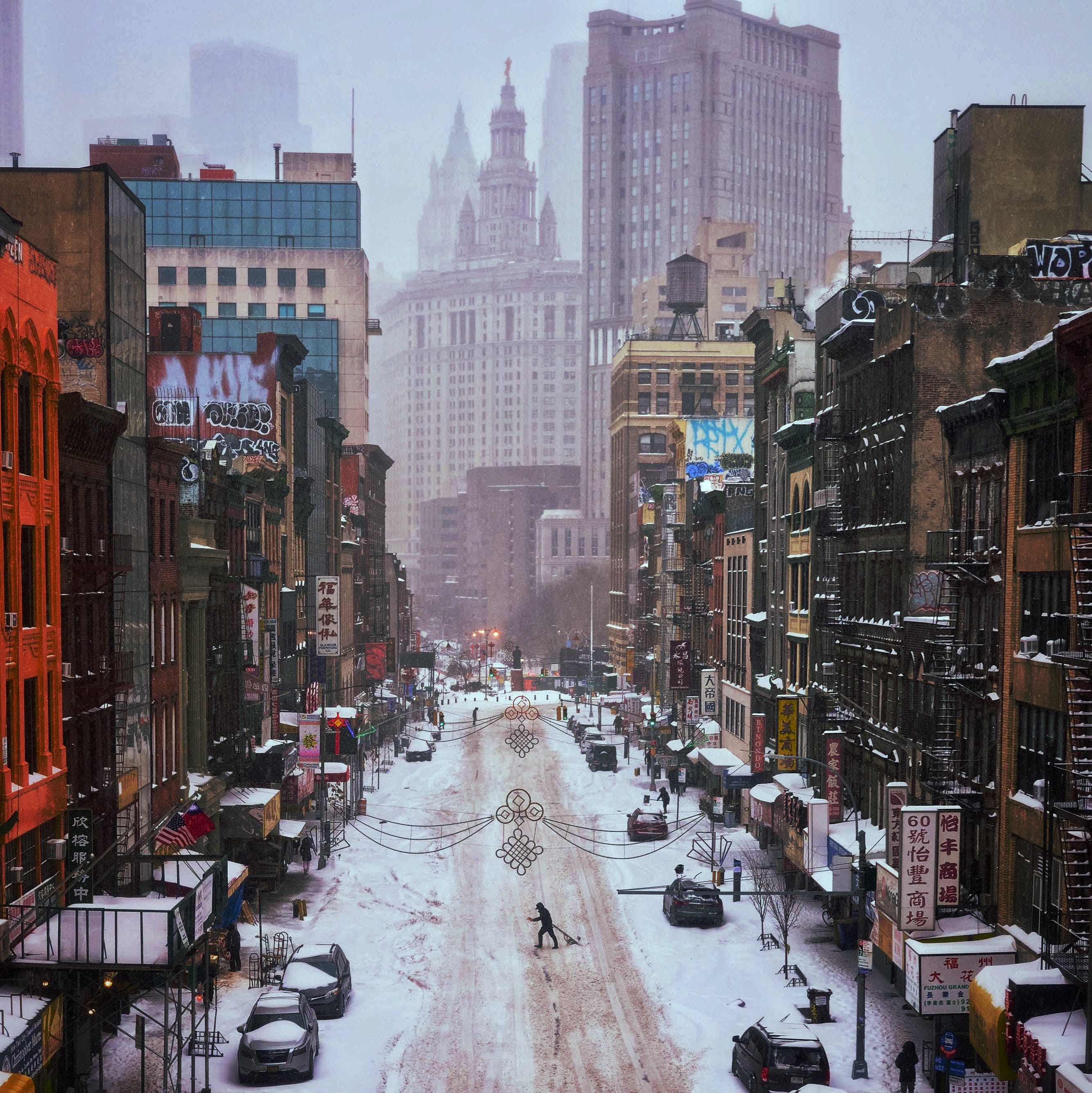 The snowstorm from above Chinatown. New York, January 25, 2026. Photographs by Lukas Flippo.